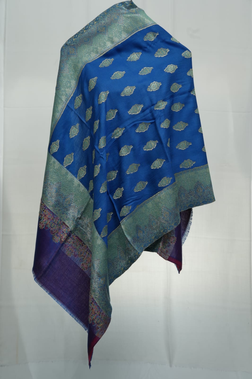 Kani Jama do Patri pashmina shawl with blue, green, grape bottom